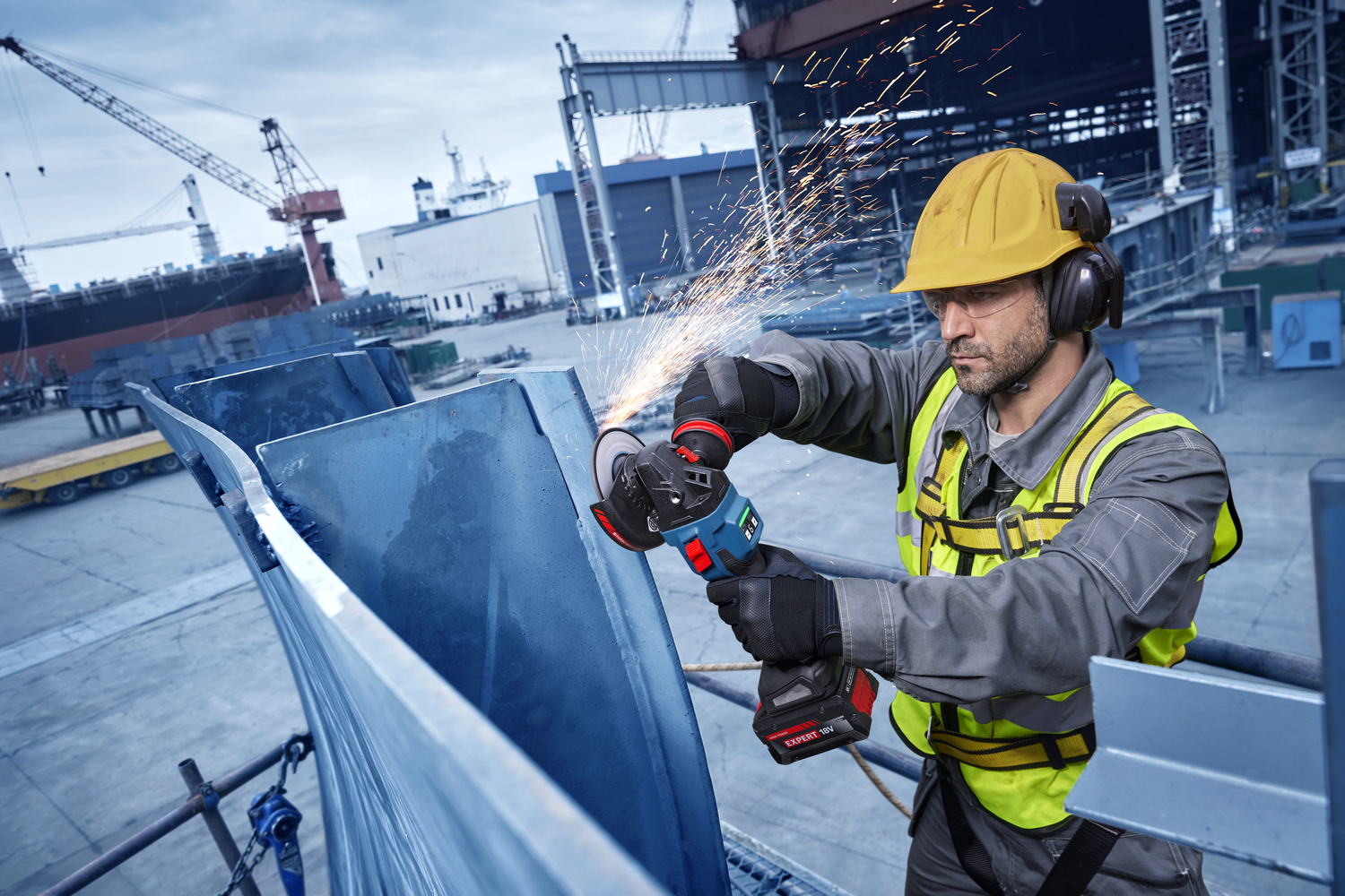 - Tato úhlová bruska EXPERT je nepostradatelná v případě zásobníků na ropu, větrných elektráren, věží a mostů a dokáže opracovat velké díly od výztuží větších než 20 mm až po beton