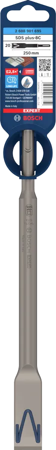 EXPERT SDS plus-8C využívá technologii Bosch Carbide Technology, která zajišťuje jeho výjimečnou odolnost proti opotřebení. Nejodolnějším článkem sekáče je karbidový hrot: i při soustavném a náročném používání dokáže odolávat nárazům. Díky samoostřící konstrukci navíc zůstává sekáč účinný po celou dobu své dlouhé životnosti. Žebrovaná konstrukce pomáhá vytvářet boční a svislé trhliny v materiálu, zabraňuje zasekávání a zajišťuje rychlý postup. Plochý sekáč je ideální pro bourací práce betonu a zdiva, které vyžadují větší přesnost: přesné vyhledávání toho zdiva, které je potřeba odstranit, vysekávání kanálů na trubky nebo odstraňování podlahové stěrky